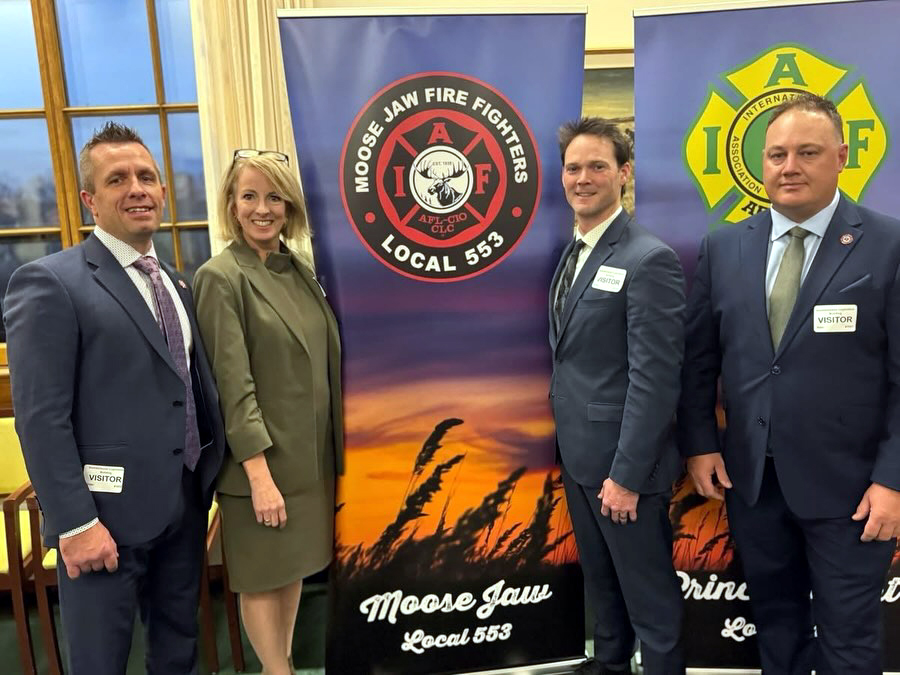 Más de 30 bomberos y paramédicos de la AIB se reunieron con legisladores provinciales a finales de noviembre para impulsar la mejora de los recursos de salud mental, la actualización de la legislación del SEM y cambios importantes en la legislación laboral durante el 28º lobby legislativo anual de la Asociación de Bomberos y Paramédicos Profesionales de Saskatchewan (SPFFPA).