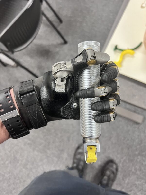 «Por desgracia, no tuve una buena experiencia con la primera empresa que probé, pero me hablaron de la clínica Hanger unos amigos», dijo Wright. «El personal de allí pudo conseguirme una que funcionaba bien con mínimas complicaciones. También me pusieron un accesorio en el volante para poder girar tan bien como antes de perder la mano».