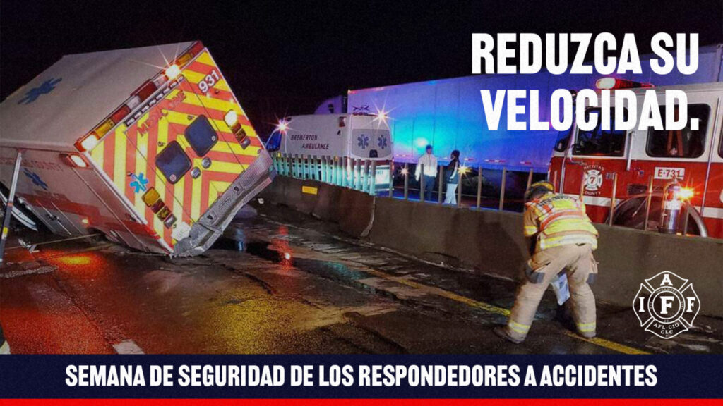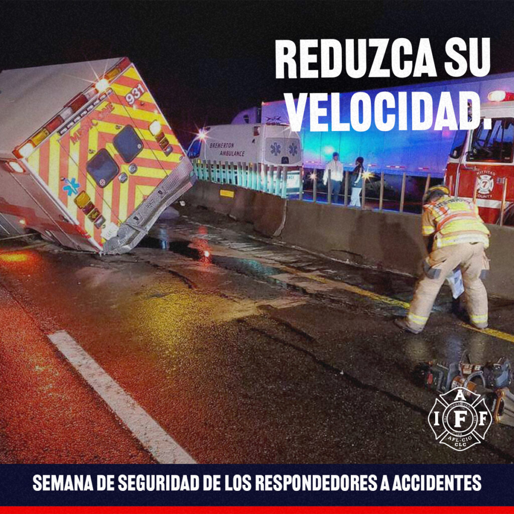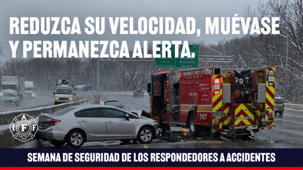 Es la Semana de Seguridad para los Respondedores de Accidentes (CRSW). Casi cada semana, un primer respondedor fallece mientras ayuda a despejar un accidente en la carretera. Muchos más sufren lesiones que alteran sus vidas. Nuestros miembros trabajan incansablemente para salvar vidas en escenas de incidentes de tráfico de la manera más segura y rápida posible. No obstante, necesitamos que los conductores hagan su parte para proteger a los respondedores reduciendo la velocidad, cambiando de carril y manteniéndose alerta cuando se aproximen a incidentes de tráfico. #CRSW #IAFF