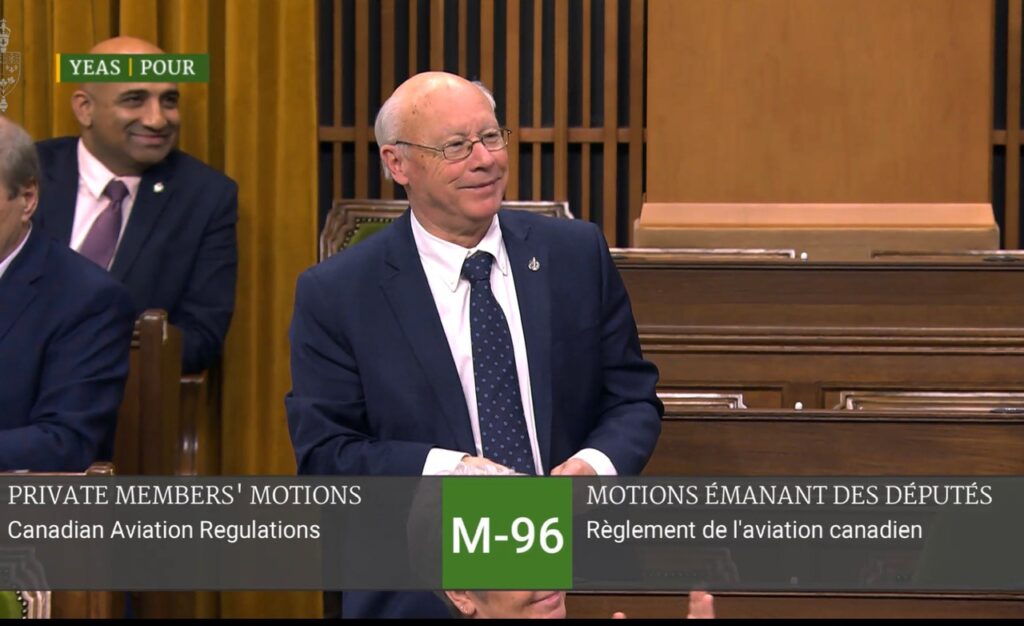 Présenté en septembre par le député libéral de la Colombie-Britannique Ken Hardie en réponse aux pressions de l’AIP , le projet de loi M-96 a été adopté mercredi par un vote de 211 contre 112, sous les yeux des représentants de l’AIP et des membres de la section locale 3659 et de la section locale 162 de l’Aéroport d’Ottawa.
