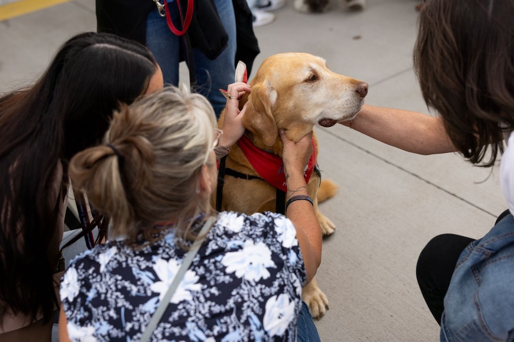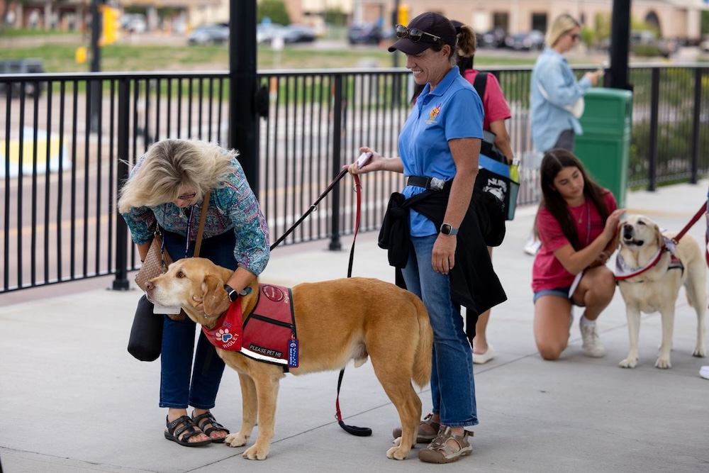 “We have 11 dogs out here tonight,” said Go Team Therapy’s Nicole Sawicki during the Friends and Family Gathering. “This event is a bit more lighthearted, and it’s a good time for family members to enjoy the dogs and each other ahead of the memorial.”