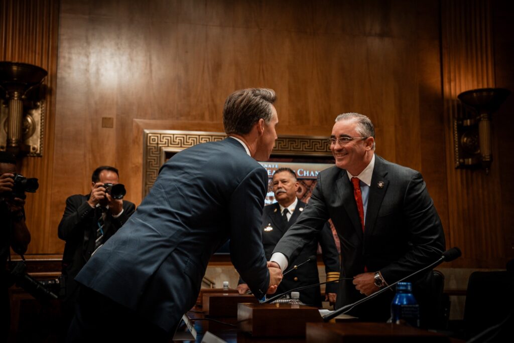 Hawley criticized Virnig for his company paying dividends to investors and doing stock buybacks rather than investing in addressing the multi-billion-dollar backlog.